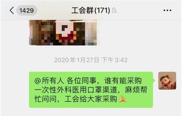 我匆匆喂完孩子,趕緊在各種微信群里到處打探采購口罩的貨源?吹椒止竟豪镆补蚕聿少徔谡值南,趕緊@了一下基層的工會干部們……