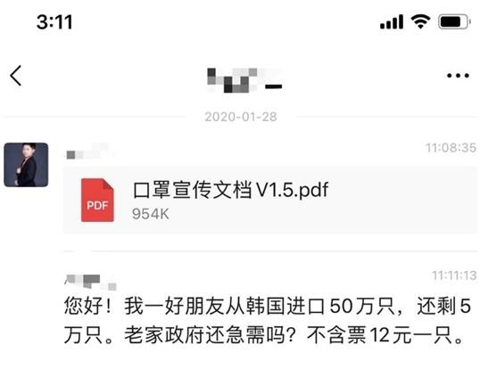 晚上6點左右,同事電話介紹了又一家口罩貨源,是跟我們合作過的一家供應(yīng)商,據(jù)說還是比較靠譜。我立馬放下了手中的碗筷,通知并組織各分公司物資采購人員統(tǒng)計采購需求,及時對接了過去。