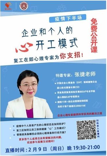 為了做好疫情期間職工的心理疏導工作,我跟心理咨詢機構(gòu)-盛心陽光的商務(wù)進行了溝通,為公司職工提供了免費公益心理熱線,及時為疫區(qū)同事疏導恐慌、焦慮等不良情緒;組織開展了《企業(yè)和個人的“心”開工模式》線上微課,為復工員工提供健康的工作狀態(tài)和心理防護。